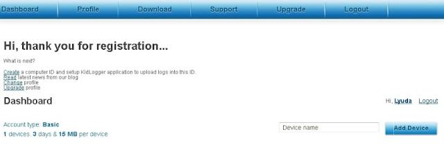 1.Just register a online account on the kidlogger website, where you can have control of monitoring everything here and setting up the device ID.